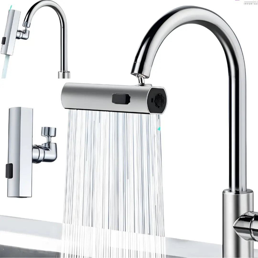 Filtro de Purificación de Agua: La salida de agua está diseñada como una pantalla de filtro de purificación de agua, Que puede filtrar eficazmente los sedimentos y el agua es más saludable. El grifo del filtro de salpicaduras universal tiene un modo de presión de agua mayor como un cabezal de ducha, Y tiene un fuerte impacto y puede eliminar las manchas rápidamente.